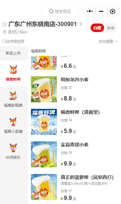 从“鲜啤福鹿家”小程序中可以看到,最便宜的福鹿鲜啤可以做到5.9元/500ml,颇受年轻女性欢迎的果啤、奶啤和茶啤也能保证个位数成交,客单价为17.02元。